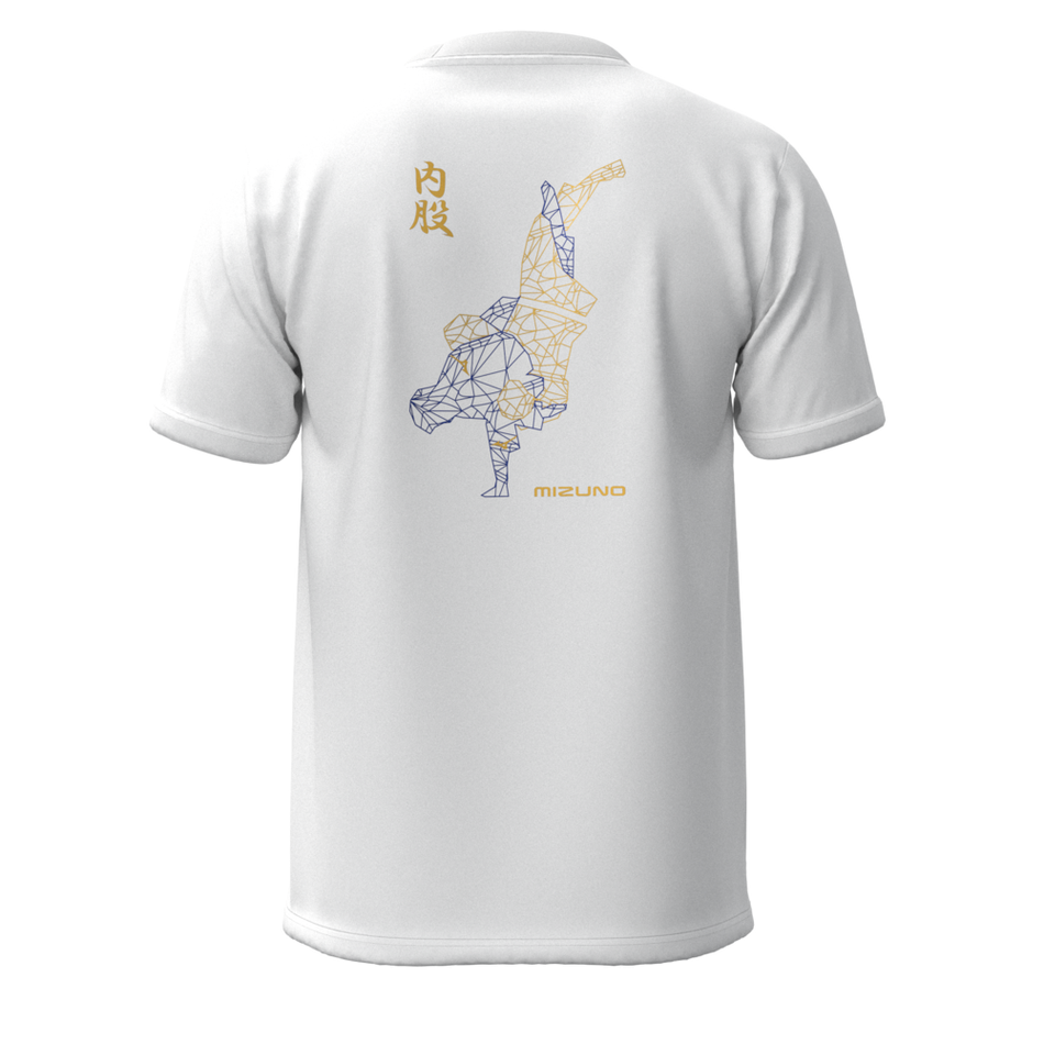 La T-shirt Mizuno Uchimata è dedicata a chi vive il Judo come una forma d'arte. Il design è incentrato sulla rappresentazione grafica della tecnica Uchimata (proiezione interna all'anca), resa con uno stile geometrico moderno e dinamico che cattura perfettamente l'equilibrio e la forza necessari per eseguire questo "ippon" da manuale.