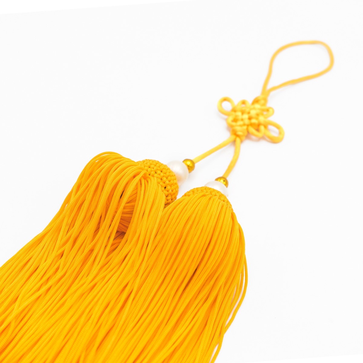 Realizzato in nylon al 100%, con due borle decorate con palline perlate, è un accessorio che unisce tradizione e funzionalità.